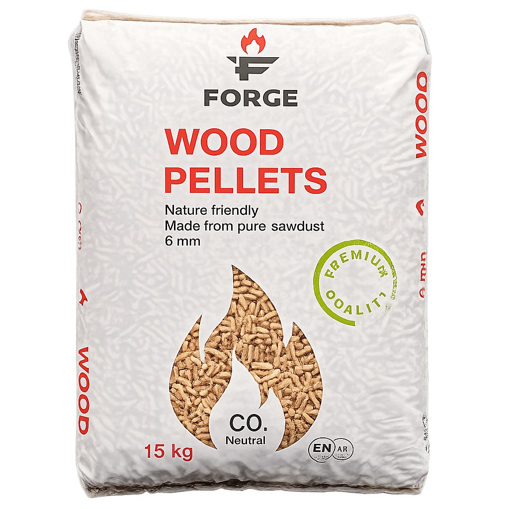Forge Premium Pellets – Beleef ultieme warmte met deze witte, 100% naaldhout houtpellets, met ENPlus A1 Keurmerk. Forge houtpellets onderscheid zich van andere pelletkorrel merken vanwege de lage vochtigheidsgraad van slechts 3,8% en zeer uitzonderlijke hoge calorische waarde van 5,01 kWh/kg, waardoor er optimale verbranding plaatsvind in uw pelletkachel. De hoge asvervormingstemperatuur van 1490°C zorgt voor een minimale asvorming van minder dan 0,3%